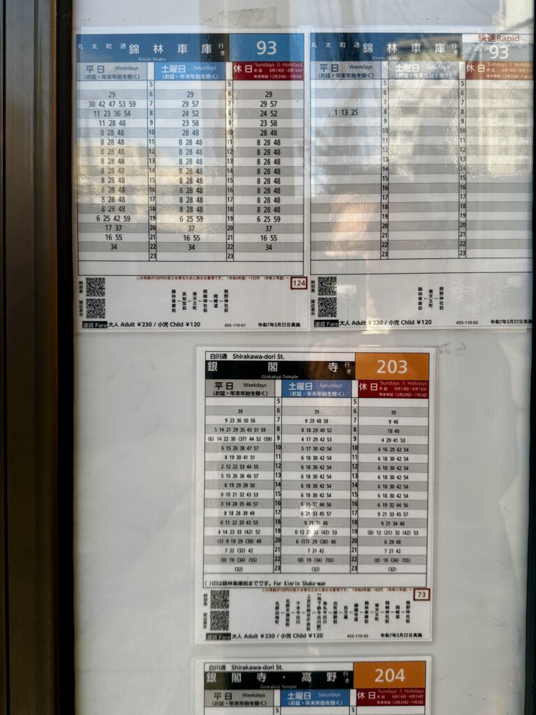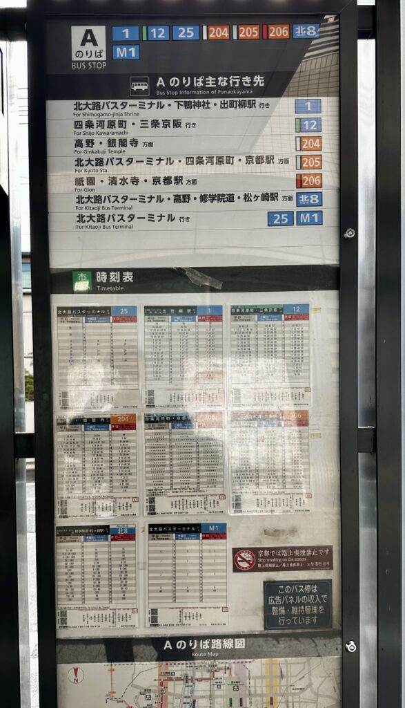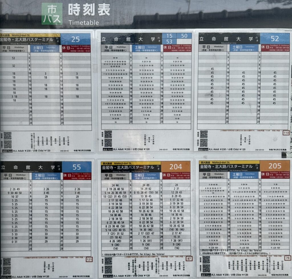 「205」は、京都駅からくる「金閣寺行き」のため、とても混んでる可能性が。他の路線にした方が比較的すいてるかも。