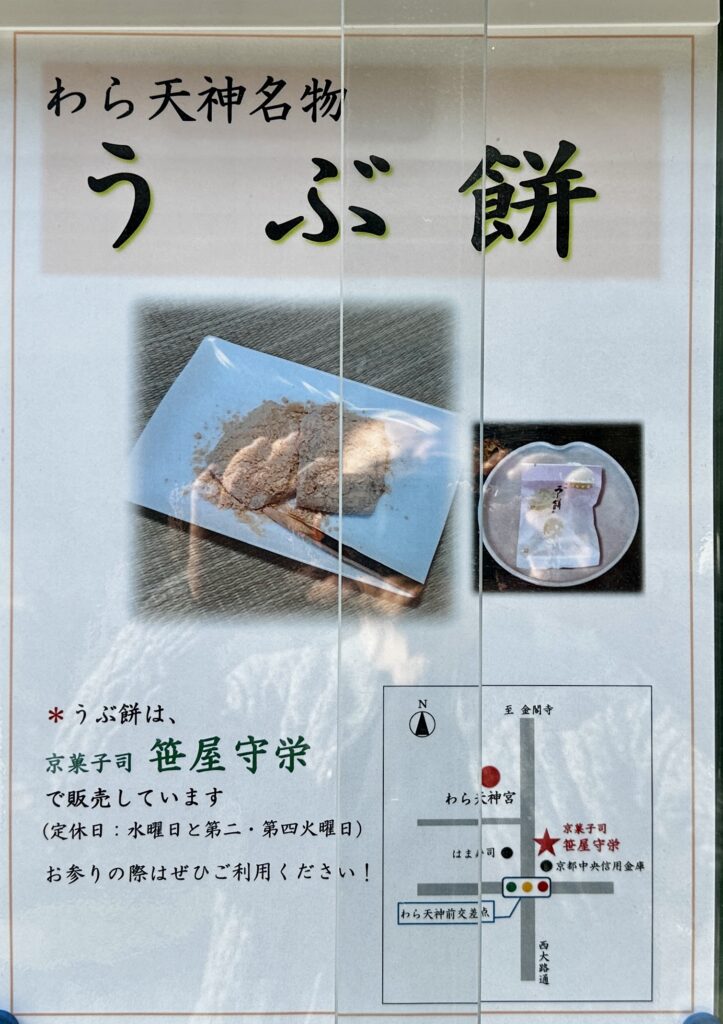 JR京都駅 →(嵯峨野線/乗車10分)→ JR「円町駅」下車 →(徒歩4分)→ 「西ノ京円町」バス停(市バス【204】【53】【15】【205】/乗車7分) → 「わら天神前」バス停下車 →(徒歩2分)→ わら天神宮