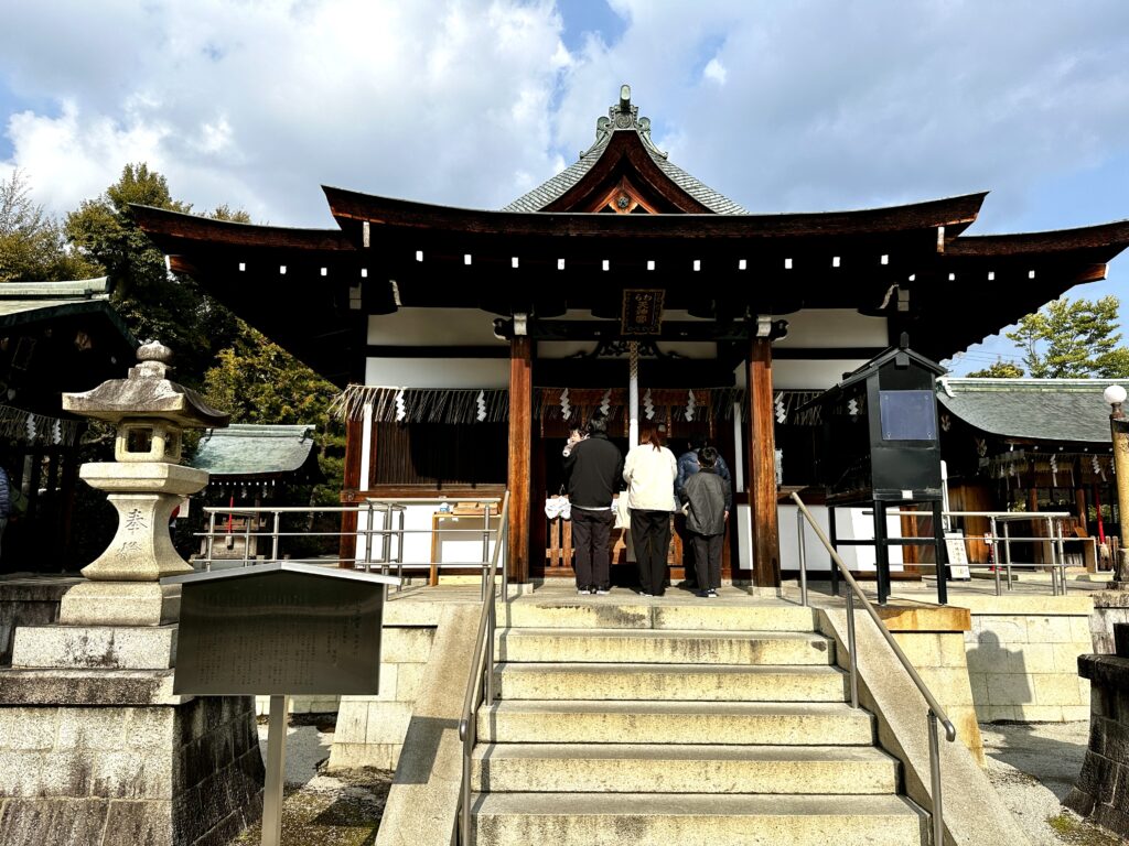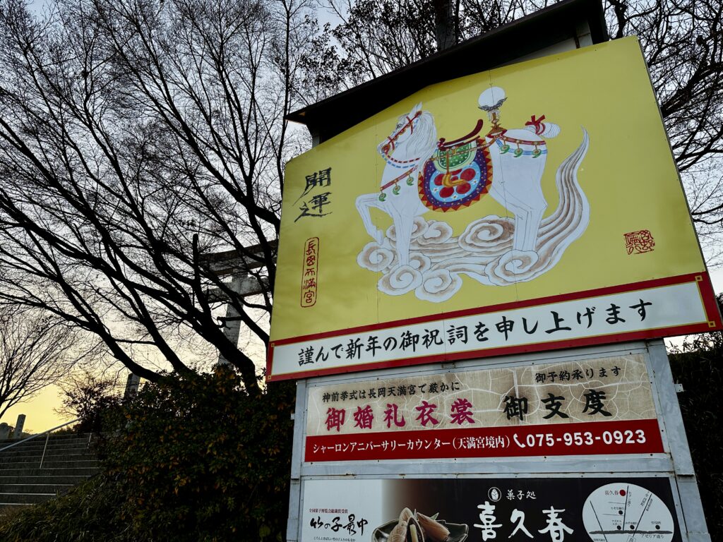 西院春日神社 →(徒歩9分)→ 阪急「西院駅(大阪梅田行き)/乗車12分」 → 阪急「長岡天神駅」下車 →(徒歩10分)→ 長岡天満宮