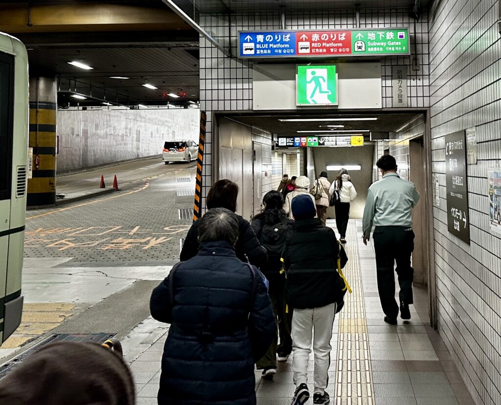 地下鉄「京都駅」は、八条口経由でも、ポルタ経由でもJRの駅にだとりつけるよ