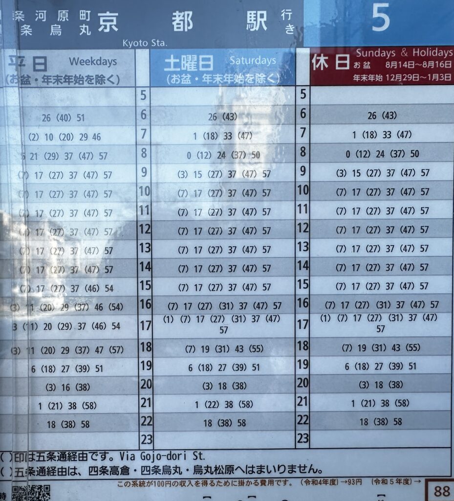 【5】系統でも【五条通5】って書いてあるバスに乗ってね。降りる停留所が違うよ!