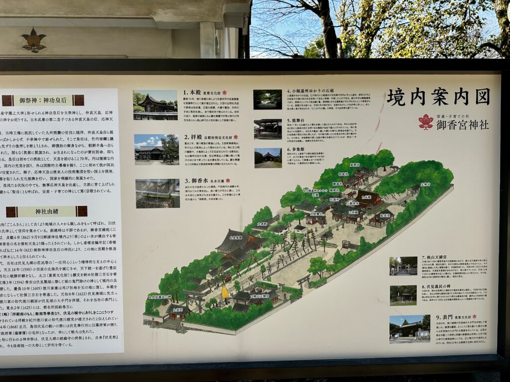 JR「桃山駅」をでたら、右方向にまっすぐ歩き、国道24号を渡ると右手に大きな鳥居が見えます。これが「御香宮」です