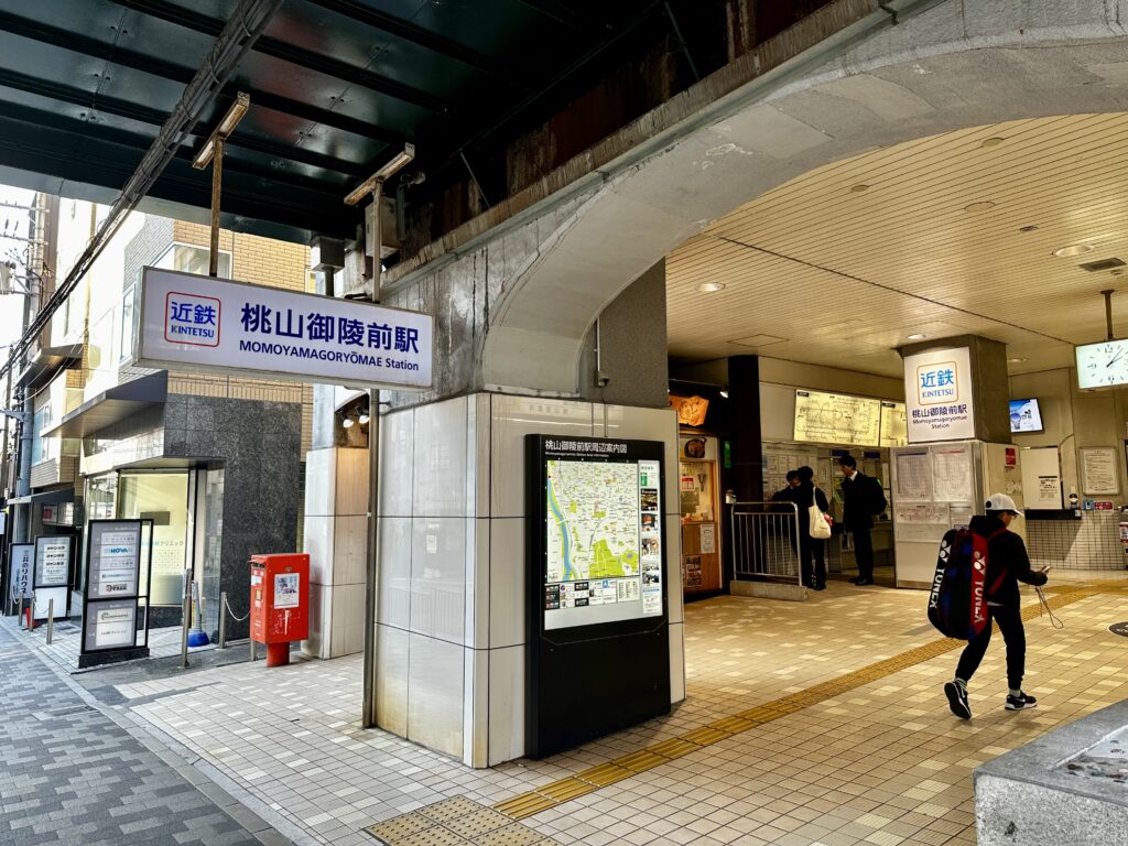 「御香宮」を出て、右にまっすぐ歩いていくと近鉄「桃山御陵前駅」に到着します。