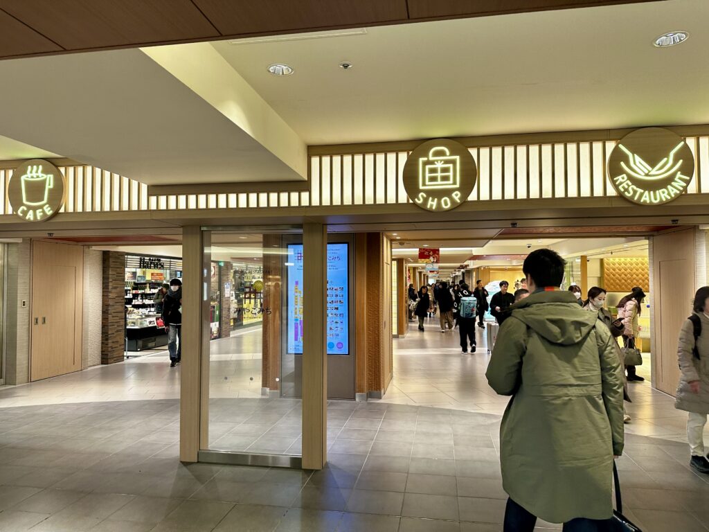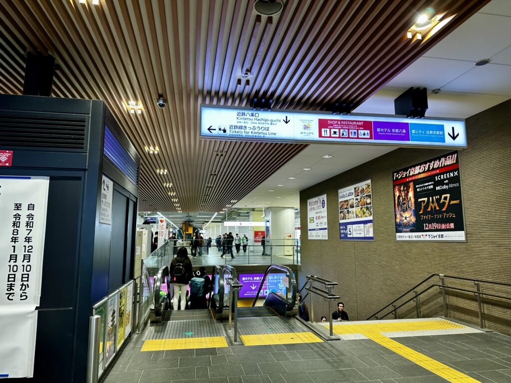 近鉄「京都駅」でおりたら改札を出て左に曲がり、すぐ左へ、エスカレーター降りたら「みやこみち」を行きます。