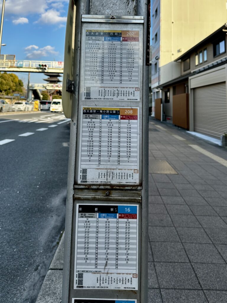 「吉祥院天満宮」を出たら、先程来た道を戻り「西大路九条」のバス停まで戻り、「西大路四条」でおります。