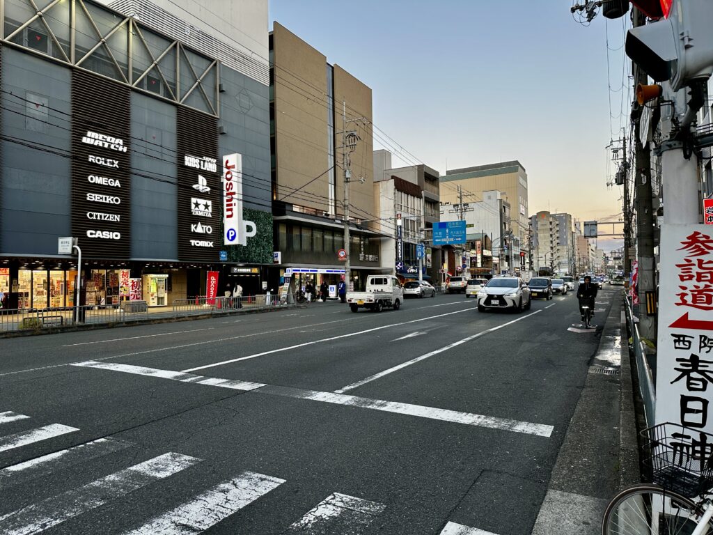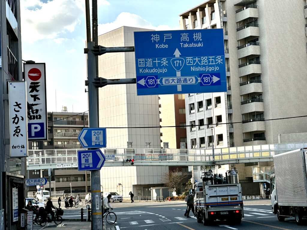 「西院駅」の前の四条通りは、目のドクだよ〜。ウマまるのおごはんお預けのままなんだよ。