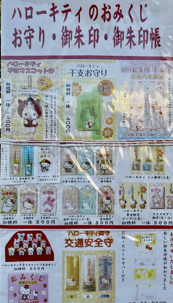 ここは、菅原道真公誕生の地なんだよ。吉祥天女も祀られていて、ハローキティの御朱印やお守りもあるんだキティちゃんの御朱印は人気です