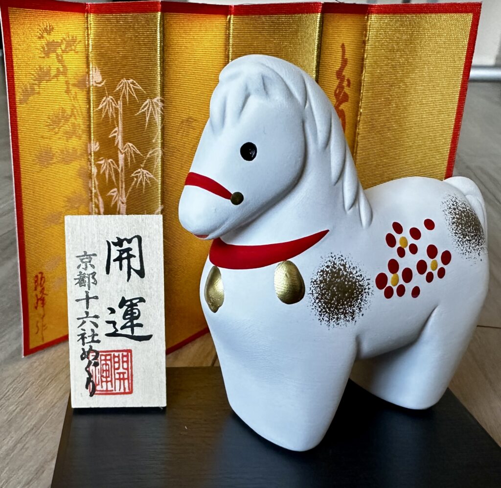今年は「午年」ボクの年、ここは「馬」ゆかりの神社でもあるんだ。「うま」おみくじもあるから、今年のウマだめしはどう!?