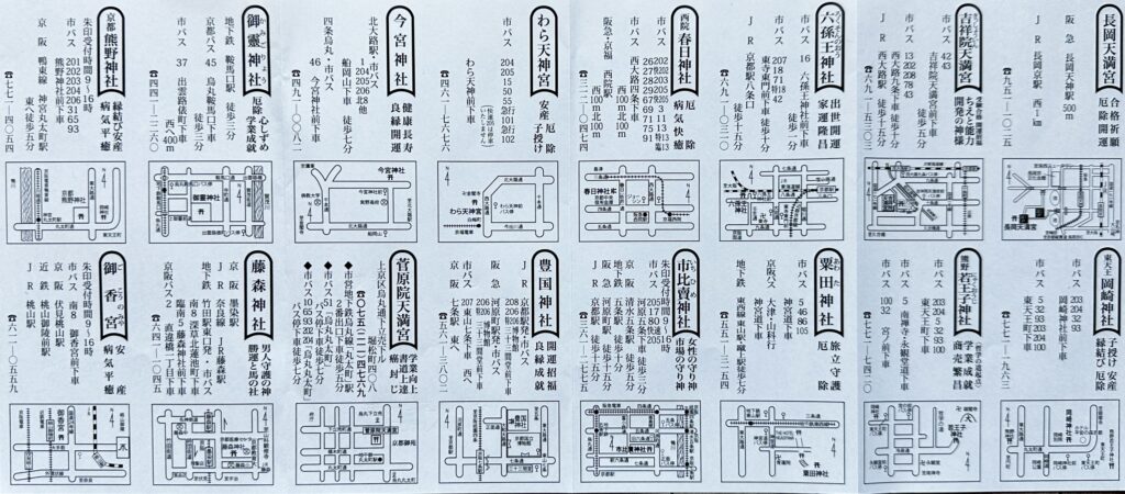 京都駅 → わら天神宮 → 今宮神社 → 御霊神社 → 菅原院天満宮 → 京都熊野神社 → 東天王岡崎神社 → 熊野若王子神社 → 粟田神社 → 市比賣神社 → 豊国神社 → 藤森神社 → 御香宮 → 六孫王神社 → 吉祥院天満宮 → 西院春日神社 → 長岡天満宮 → 京都駅
