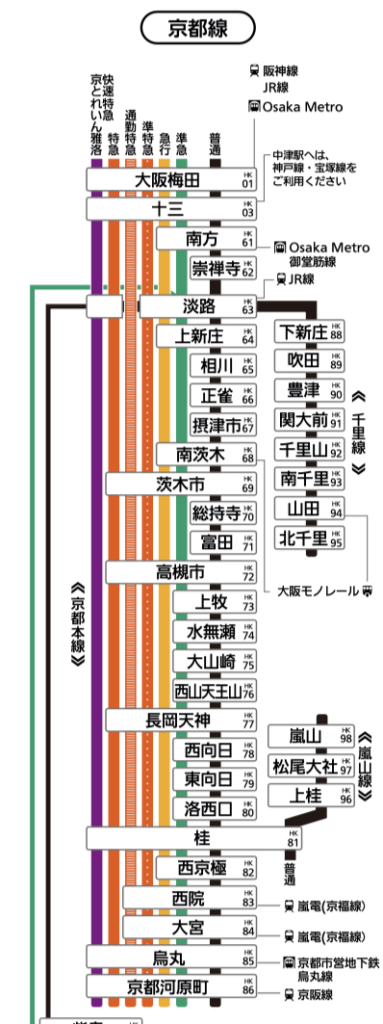 上の路線図のように「墨染駅」には準急と普通しか停車しないからお気をつけてね