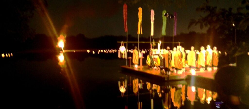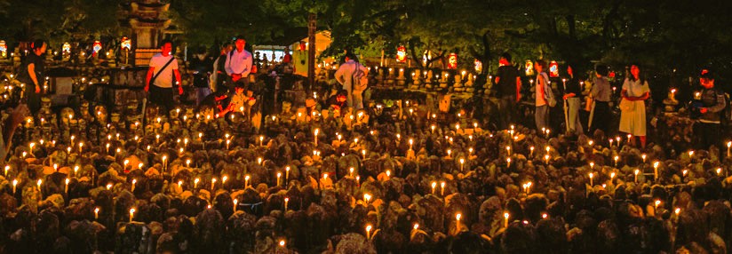 毎年8月の夕刻に西院の河原で無縁仏にろうそくを灯し、お供えする行事です。