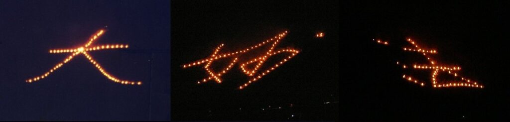 ご先祖様を送る京都の伝統行事。8月16日夜、京都の夜空に「大」「妙」「法」など5つの火文字が山々に浮かび上がります。お盆の精霊送りとして行われる行事で、京都市民にとっては夏の締めくくりのような存在です。