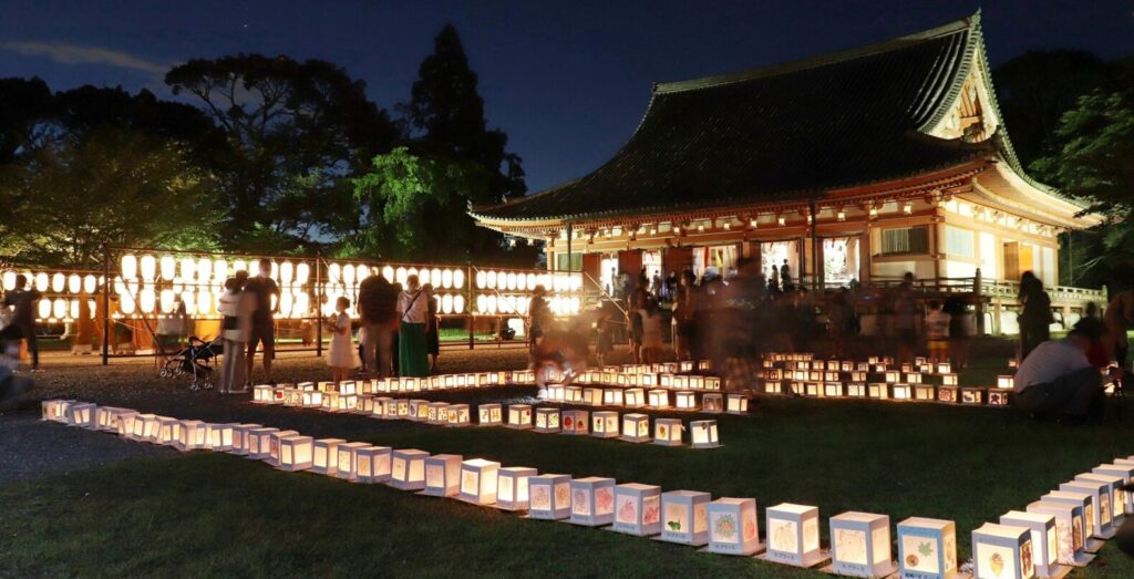 醍醐寺の万灯会は、お盆の時期に行われるろうそくや灯籠(とうろう)の灯りで先祖や平和を祈る行事で、静かな美しさと深い祈りに包まれる、伝統行事。境内にたくさんのろうそくや灯籠が並べられ、幻想的な雰囲気になります。 醍醐寺公式