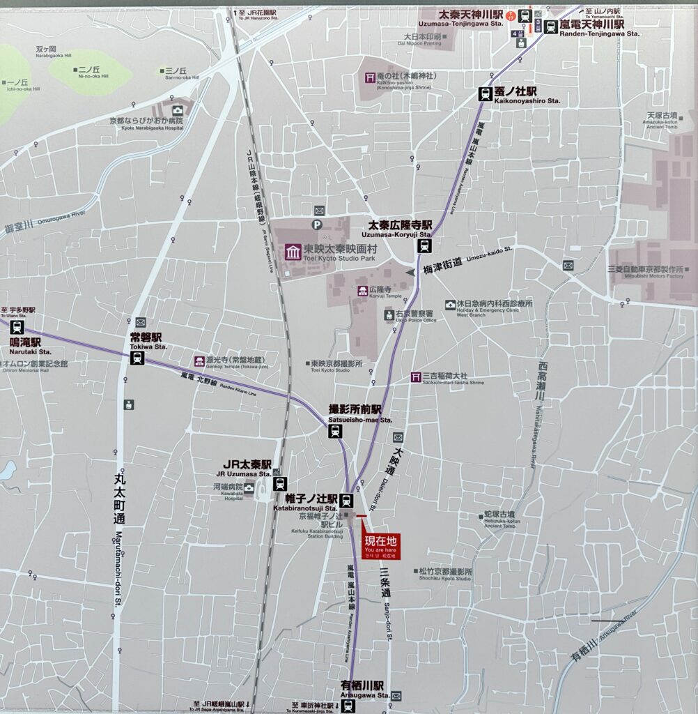 嵐電「太秦広隆寺駅」から、「帷子ノ辻駅」までつながっているので、どちらの駅からの散策もできますよ。