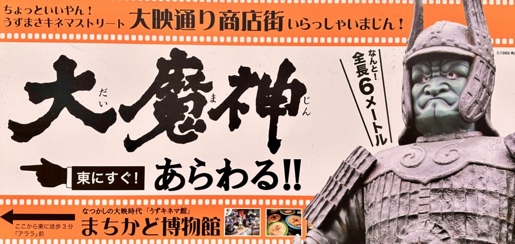 かつて大映京都撮影所で制作された特撮映画『大魔神3部作』のヒーロー大魔神が商店街の中に復活