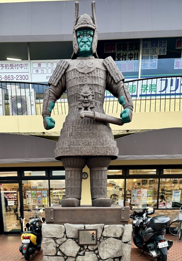 地元の人にとって「大魔神の前で集合」は合言葉。全長6mの迫力ある像で、帷子ノ辻駅からの商店街の入り口近くに立っています。